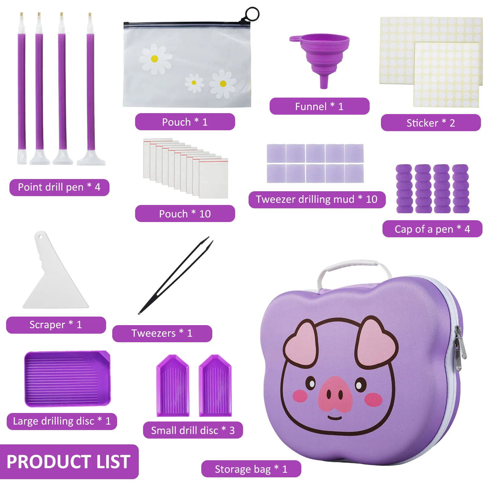 [Cute Shape & Portable] This diamond art organizer has cute animal shapes and features a two-way zipper handbag design for easy portability, allowing you to complete your diamond painting on the go.