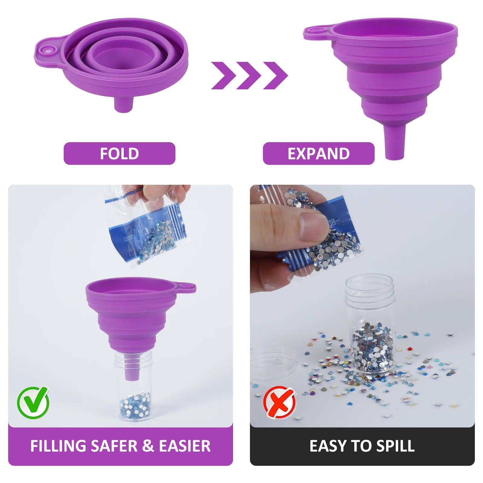 [Easy to Use] The diamond painting pen allows you to hold it more comfortably when painting or doing nail art, the tray can organize the diamonds better when painting, the funnel allows you to store the diamonds in the diamond bottle more easily, the funnel can be folded for easier storage, and the labels allow you to find the color you need more easily.