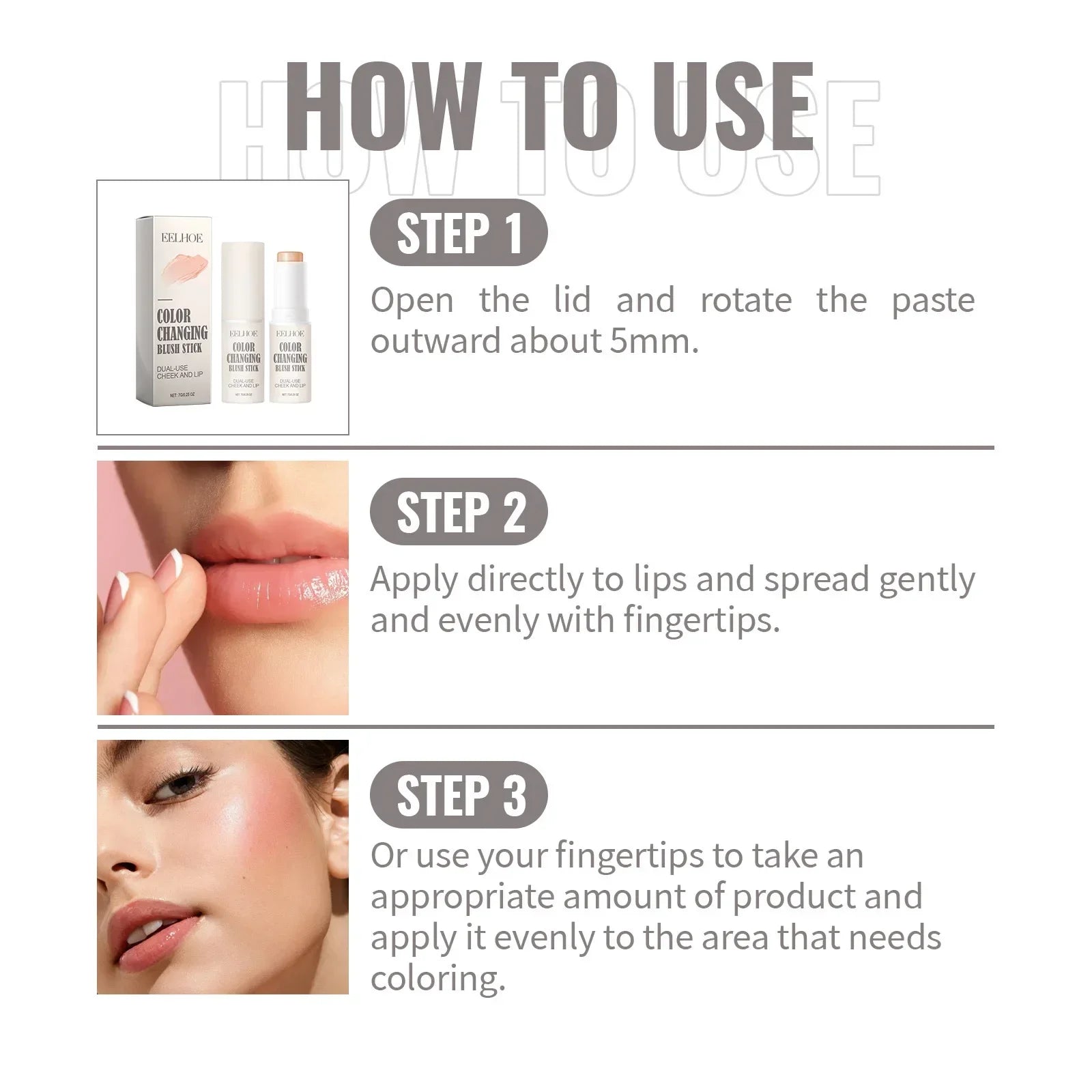 EELHOE Face Blush Stick Color Change Blush Cheek Lip Tinted Rouge Makeup Natural Contour Blusher Highlighter Makeup Cosmetics