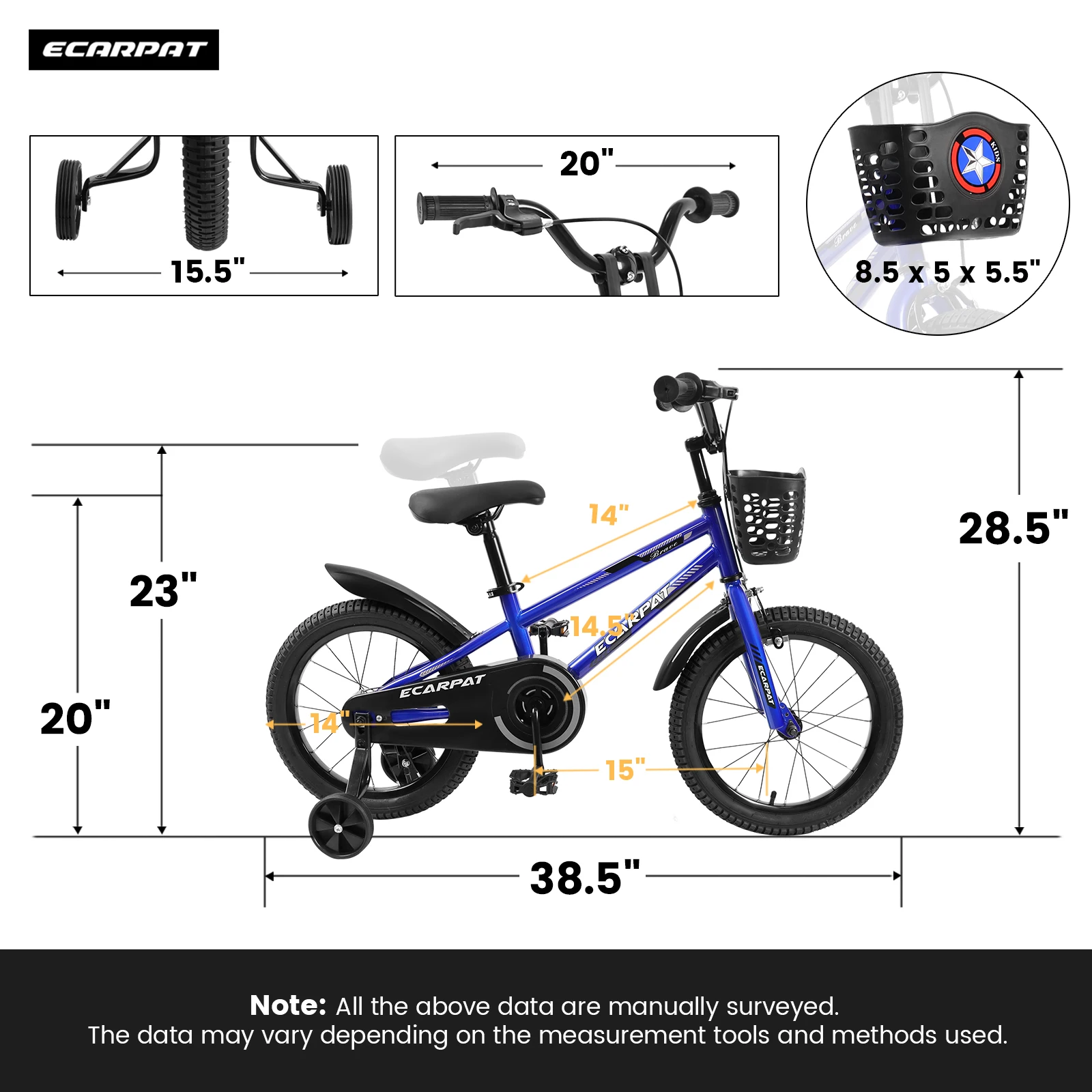 Kids Bike 14 inch for Boys & Girls with Training Wheels, Freestyle Kids' Bicycle with Bell,Basket and fender.