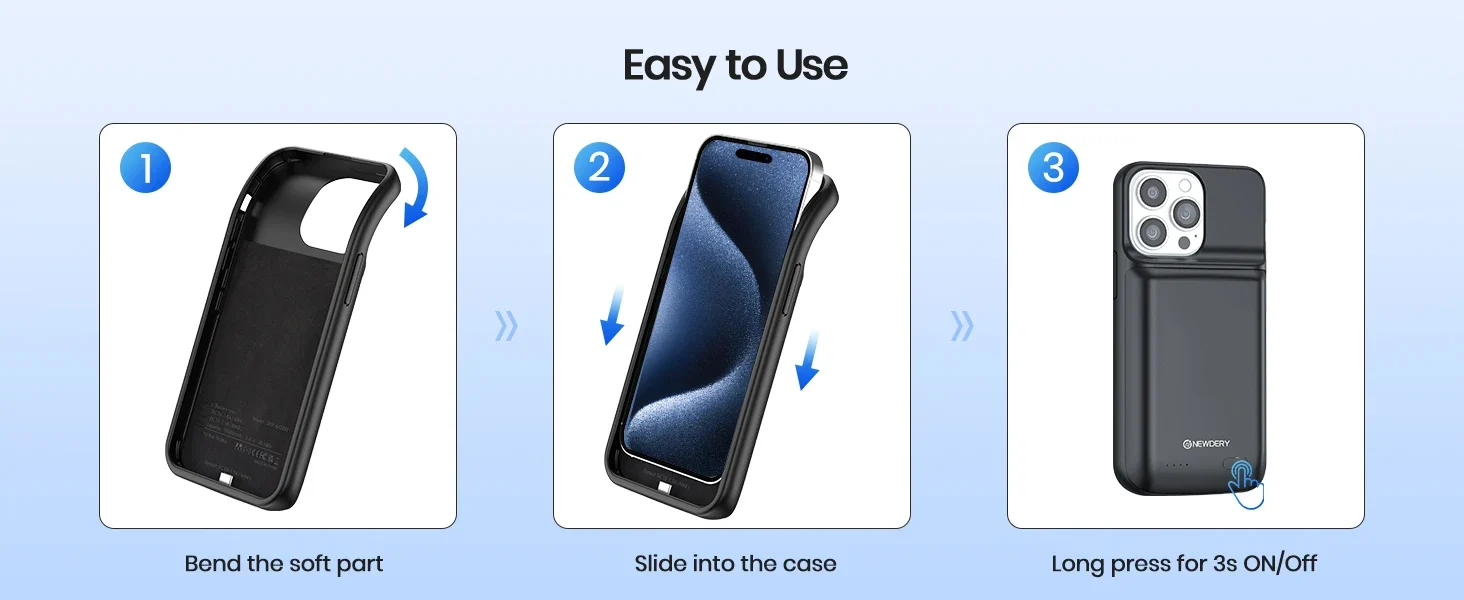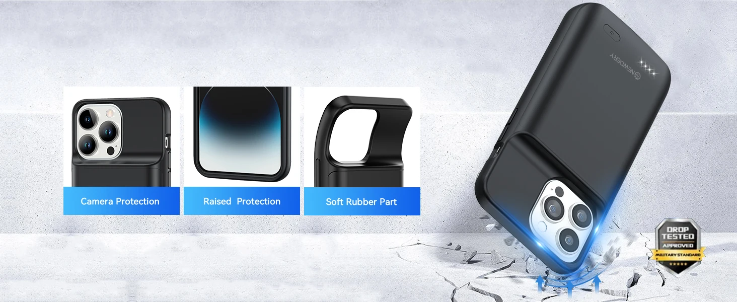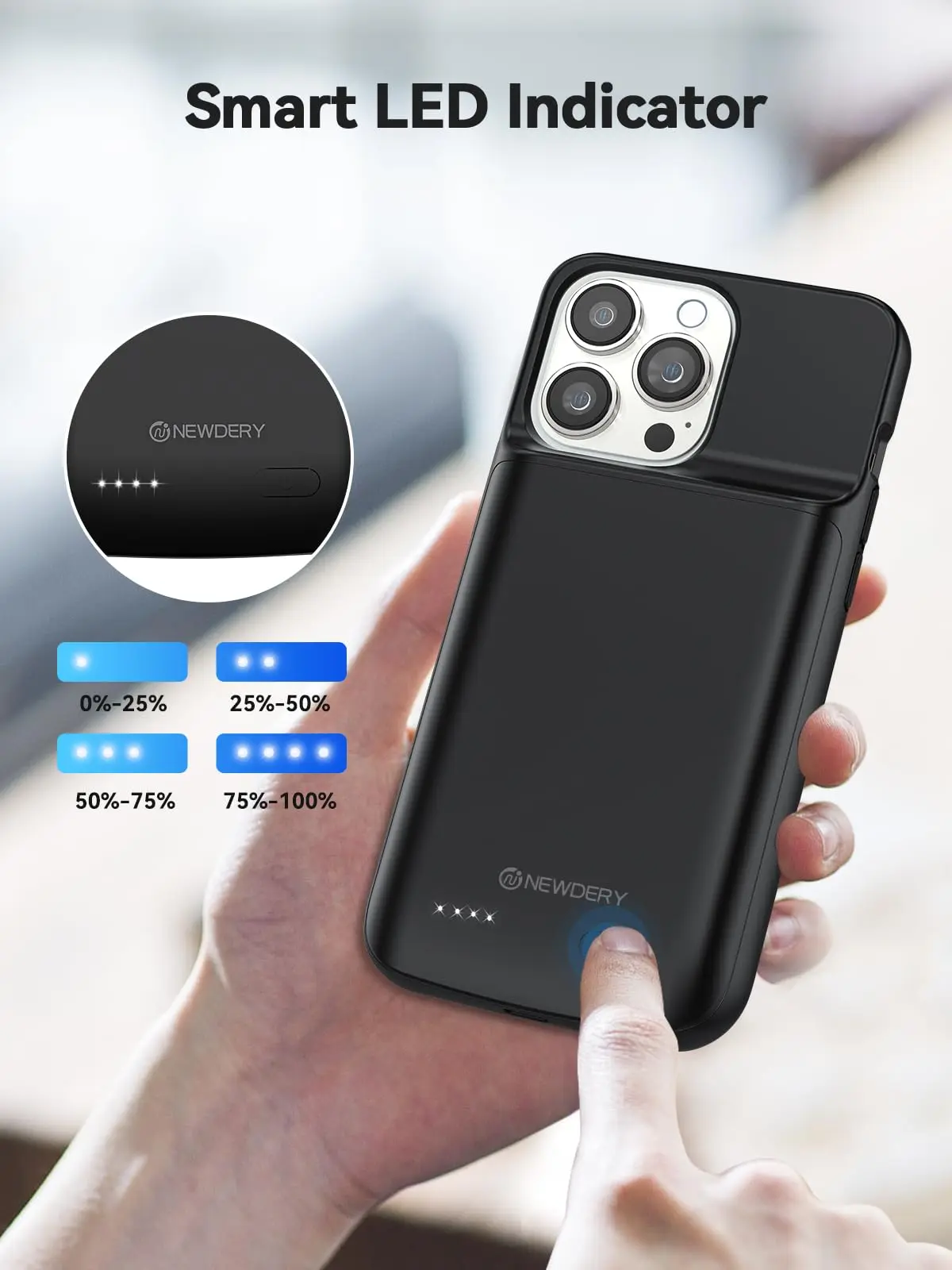 • Extended 110% Battery Life: The NEWDERY 5000mAh extended charging case provides extra standby time for your iPhone. With its high capacity, ultra-slim design, and portability, it is perfect for daily heavy users, outdoor activities, business trips, or travel.