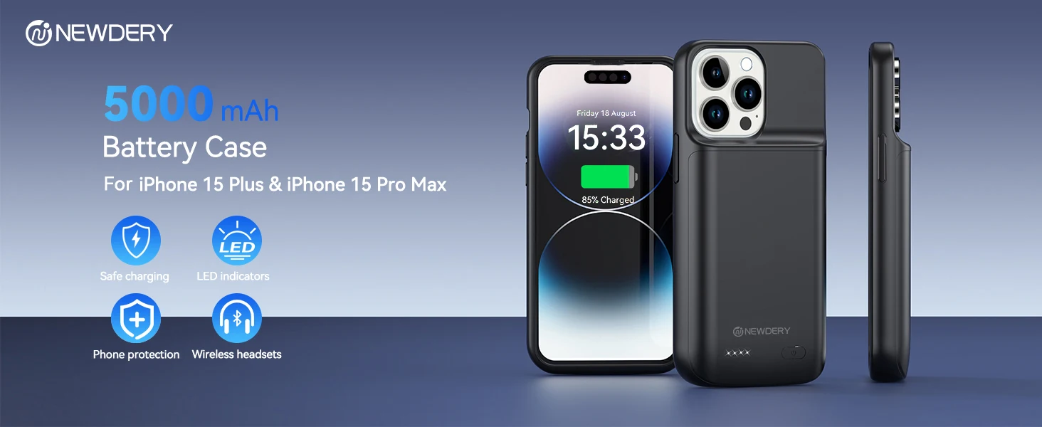 NEWDERY Battery Case for iPhone 15 Pro Max/iPhone 15 Plus Portable Rechargeable Extended Charger Case Battery Pack Charging Case