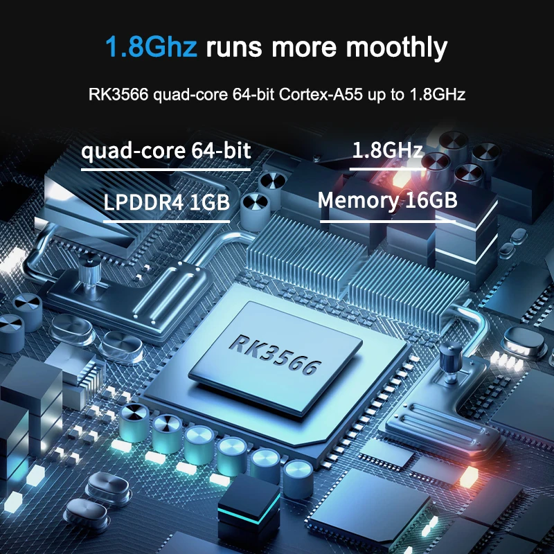 -- CPU:Quad-Core 64 bit Cortex-A55, Main frequency up to 1.8GHz