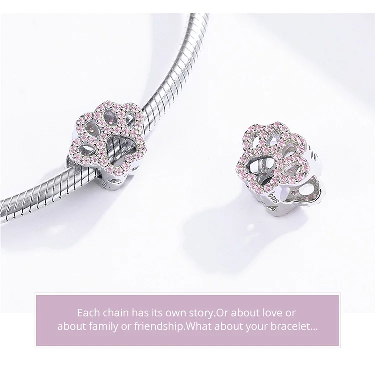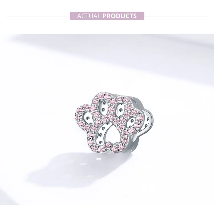 Título: bamoer Plata de Ley 925 mascota gato huella de patas de perro abalorio para pulsera DIY joyería Fabricación de joyería de marca de lujo BSC164 Tamaño: 1*1,1 cm Material: S925 + platino plateado + Pavé configuración CZ Descripción: inspiradas por lindas huellas con circonita rosa, son el testigo de tu historia con tu adorable mascota.