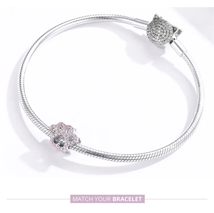 bamoer 925 Sterling Silver Pet Cat Paw Footprint Bead Charm for Bracelet DIY Jewelry Making Luxury Brand Jewelry BSC164