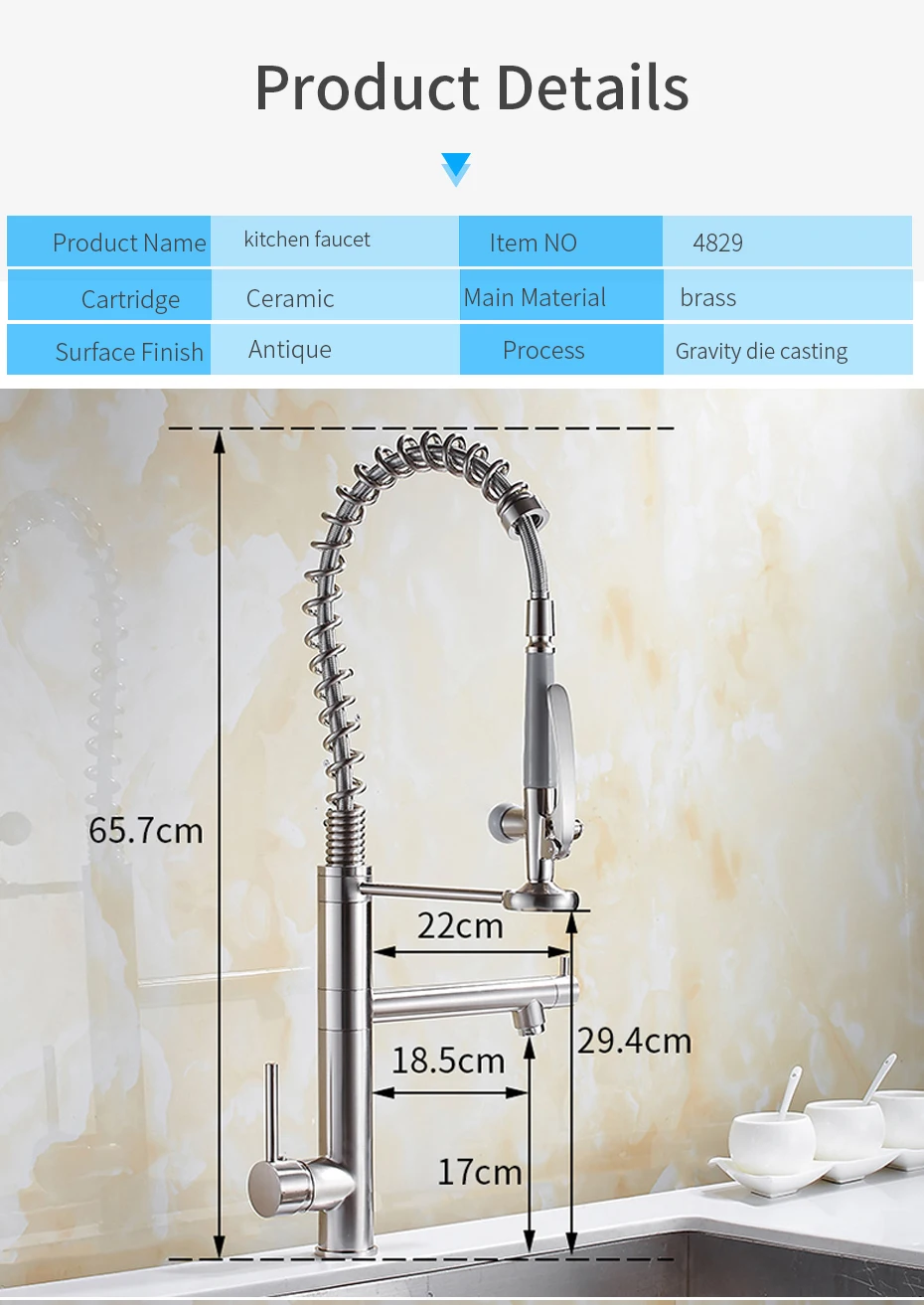 Kitchen Faucet Chrome Brass Tall kitchen faucet mixer Sink Faucet Pull Out Spray Single Handle Swivel Spout Mixer Taps MH-4829