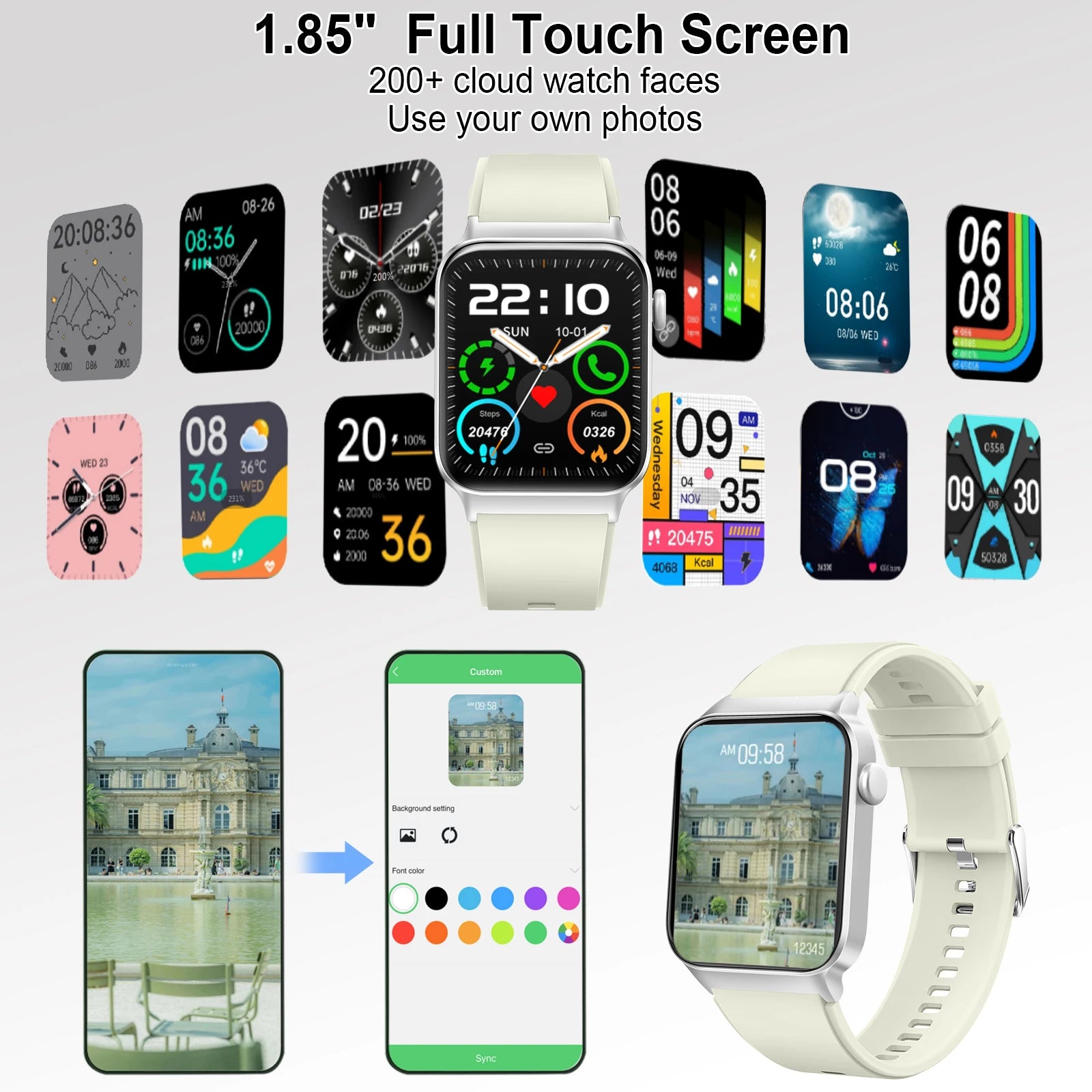 Smart Watch, 1.85" Smartwatch (Answer/Make Call), IP68 Waterproof Fitness Tracker, 100+ Sport Modes, Heart Rate and Sleep Monito
