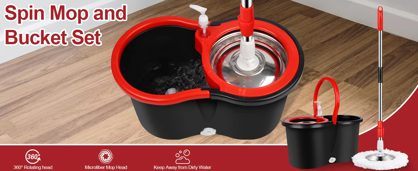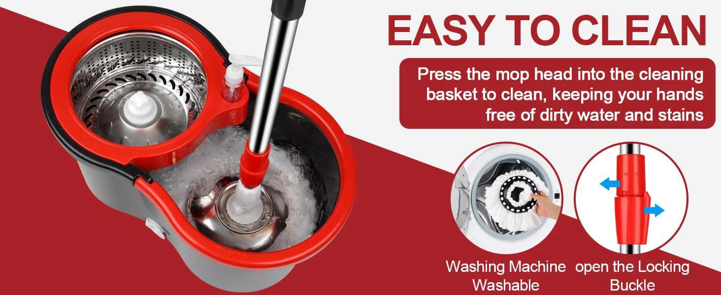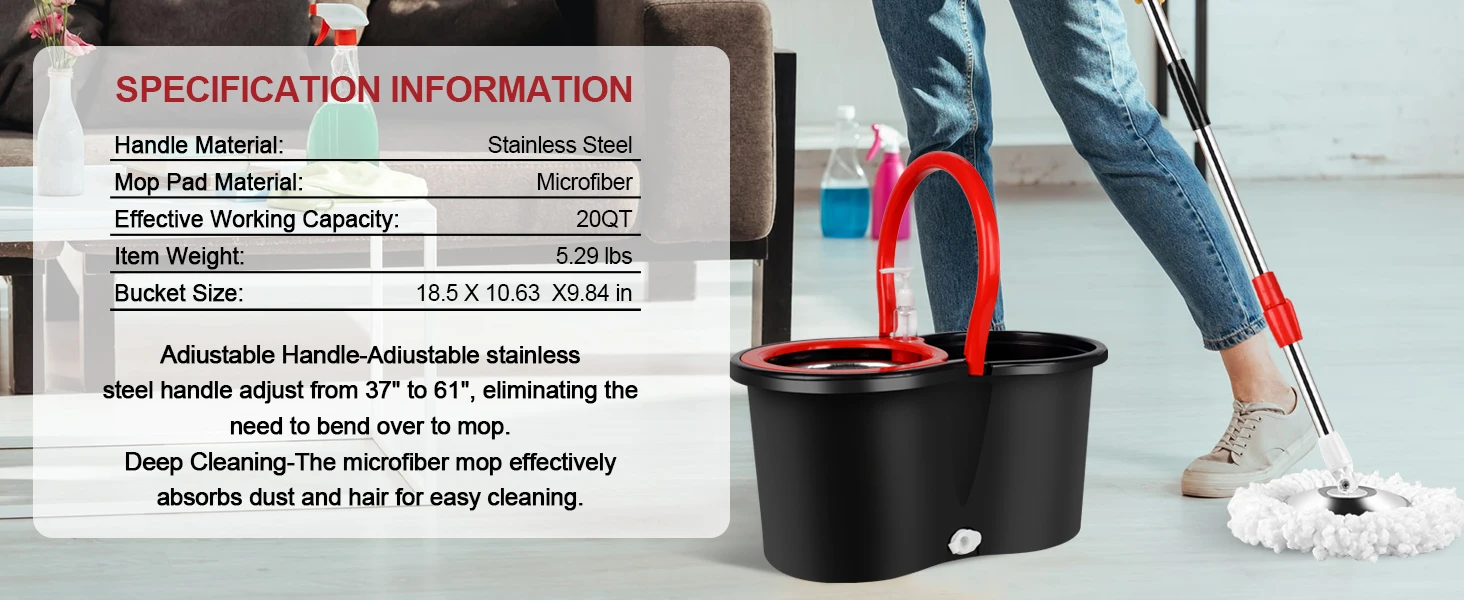 • Quality material - unlike others, basket, wringer, pallet and handle of our spin mop are Made of durable stainless steel and PP. Upgraded handle allows the mop head to wing drier and make less noise. The telescoping handle adjusts up to 61 inch, so you don’t have to bend down and suffer from back pain